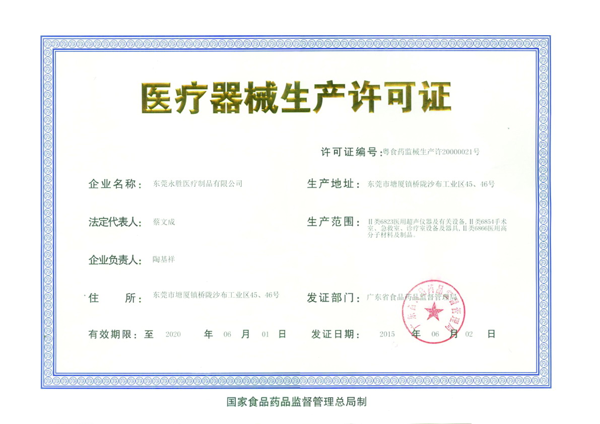 永胜医疗生产许可证更新